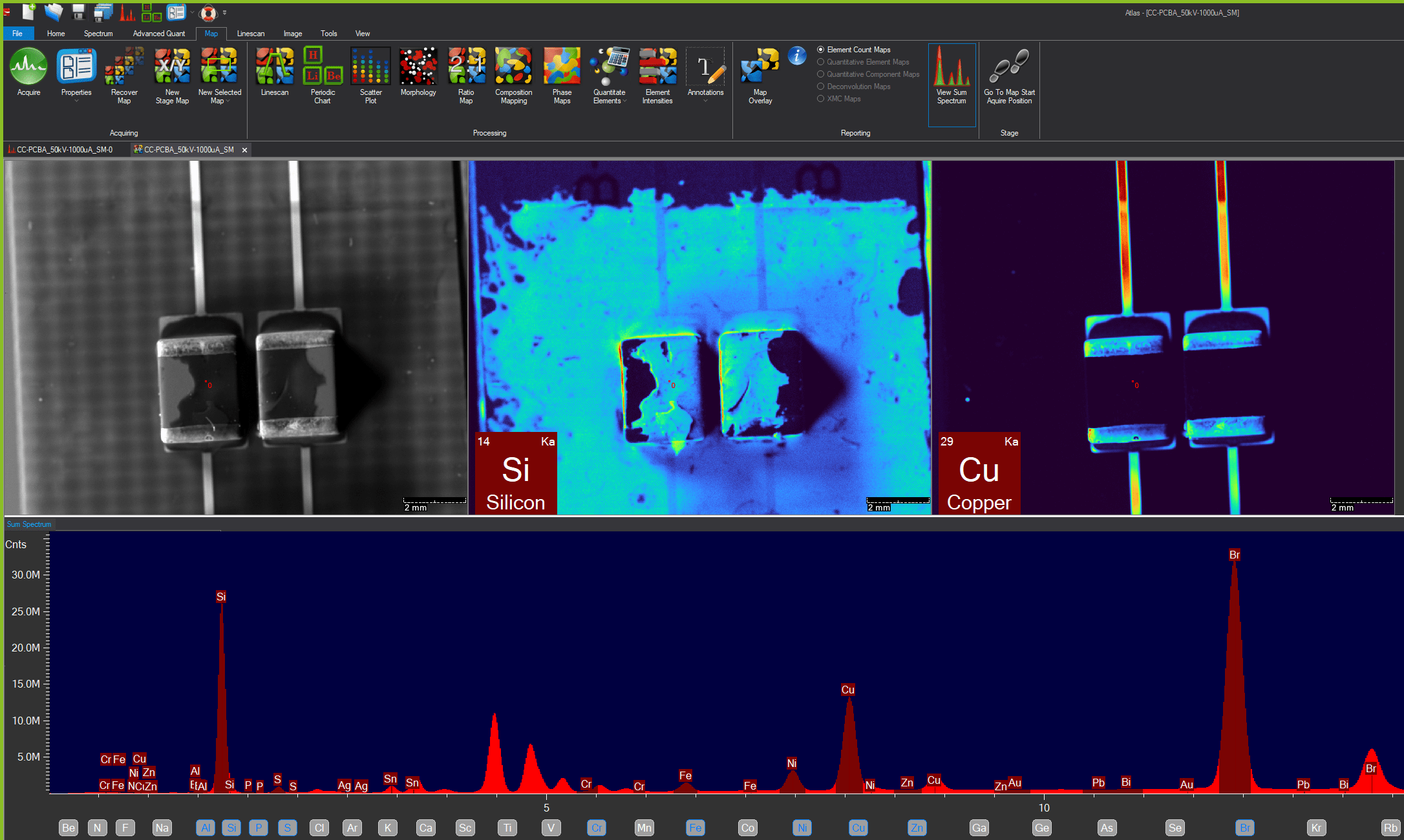 ATLAS Apex’ Iridium Ultra software platform, developed with SEM/EDX elemental mapping and analytical functionality, is unsurpassed in it’s ability to provide elemental and phase mapping, line scans, critical dimensions (CD) as well as qualitative and quantitative elemental analyses of solids, liquids, particles, powders and thin films. The functional, flexible, and feature-rich software suite guarantees unprecedented productivity. ATLAS Apex X is the microXRF (μEDXRF) elemental analyzer that leads the world with innovation.